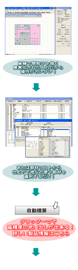 さらに新築用、リフォーム用など工法に合わせた積算根拠と受発注単価が設定済みですので初めてシステムをお使いいただく方でも『工法に合わせた適正な積算』が短時間でおこなえます。